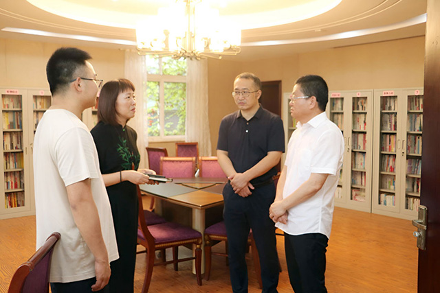 譚主席一行參觀了宏寶普工英學堂、職工之家、圖書閱覽室,集團公司工會主席肖麗琴著重介紹了宏寶近幾年的工會工作。